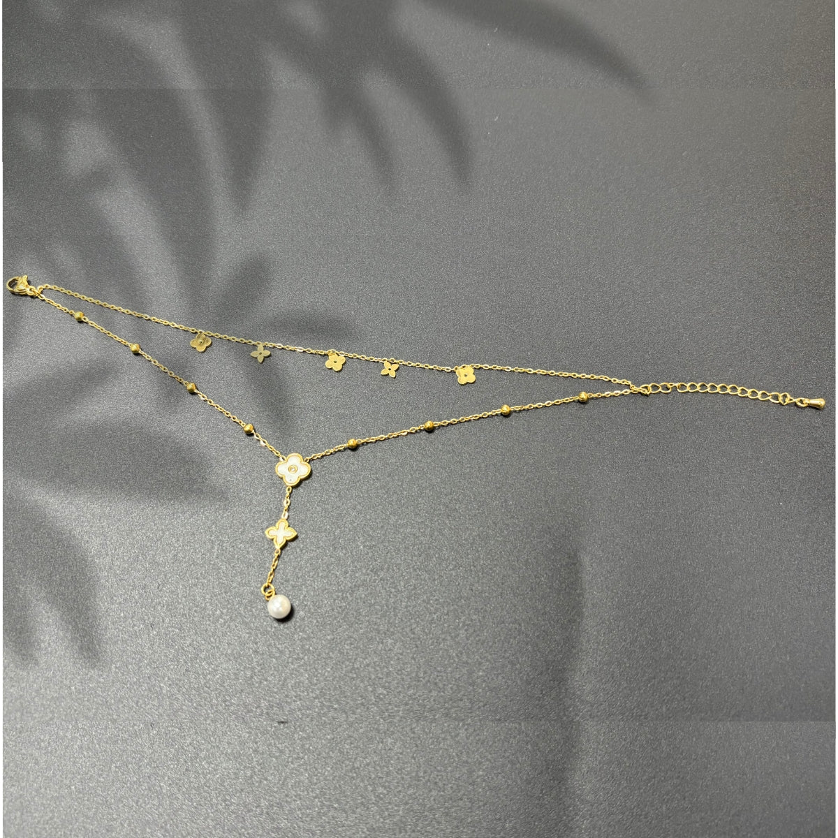 This anklet is an elegant jewelry gift. Its adjustable design ensures a comfortable fit. The combination of stainless steel and pearl beads makes it a stylish accessory.